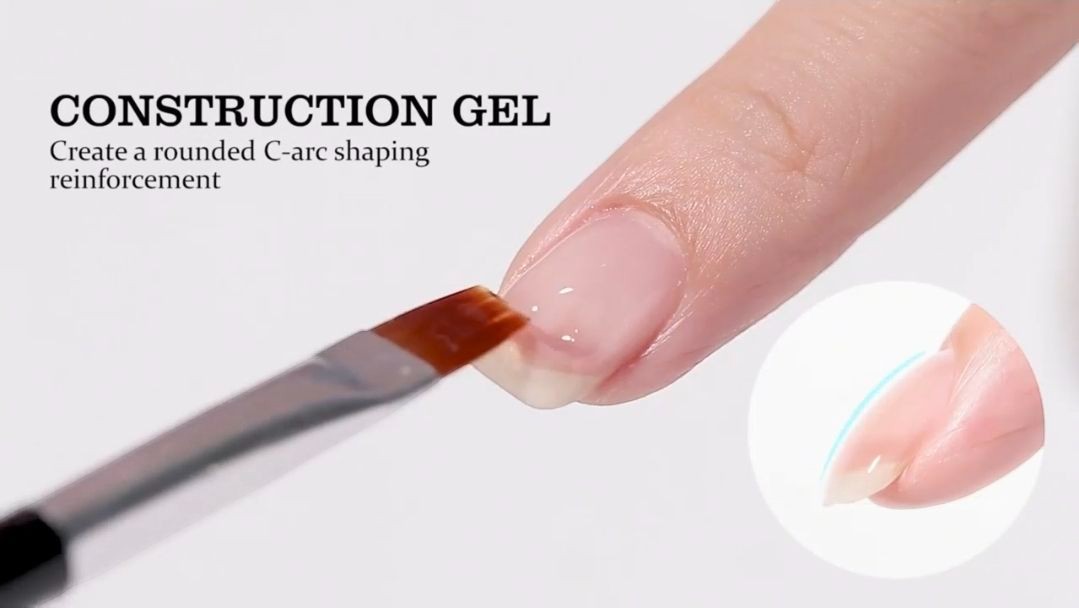 As Builder/Construction/Hard/Modeling Gel: Apply 6 in 1 gel to prepared nail, shape as needed, cure under UV/LED lamp, then file and refine.