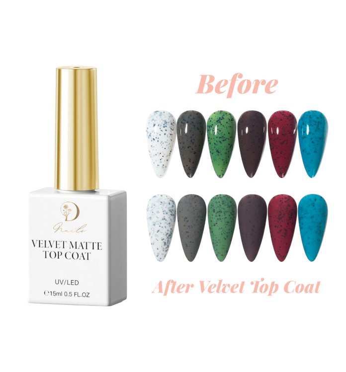 Why Choose Our Velvet Top Coat? The velvet top coat features: • Best vegan matte top coat formula • Luxurious velvet feeling finish • Perfect for chrome isolation • Professional salon quality • Smooth, even application