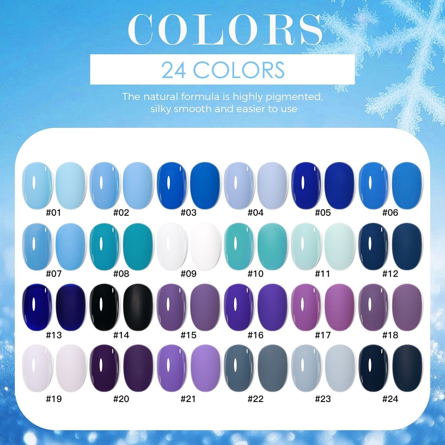 • 24 professional winter gel polish colors